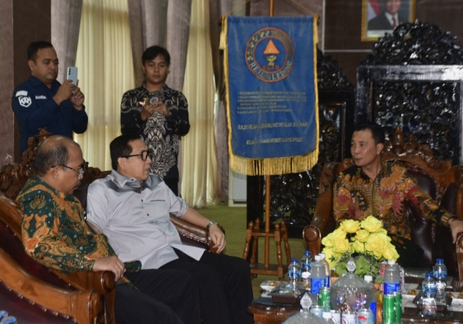 Bupati Fikri (kanan) saat menerima kunjungan Anggota Komisi XIII DPR RI SN Prana Putra Sohe, Kakanwil Imigrasi Bengkulu Victor Manurung, dan Kakanwil DJP Provinsi Bengkulu Haposan Silalahi pada Jumat, 26 September 2025 yang berlangsung di ruang kerja bup--GATOT/RK