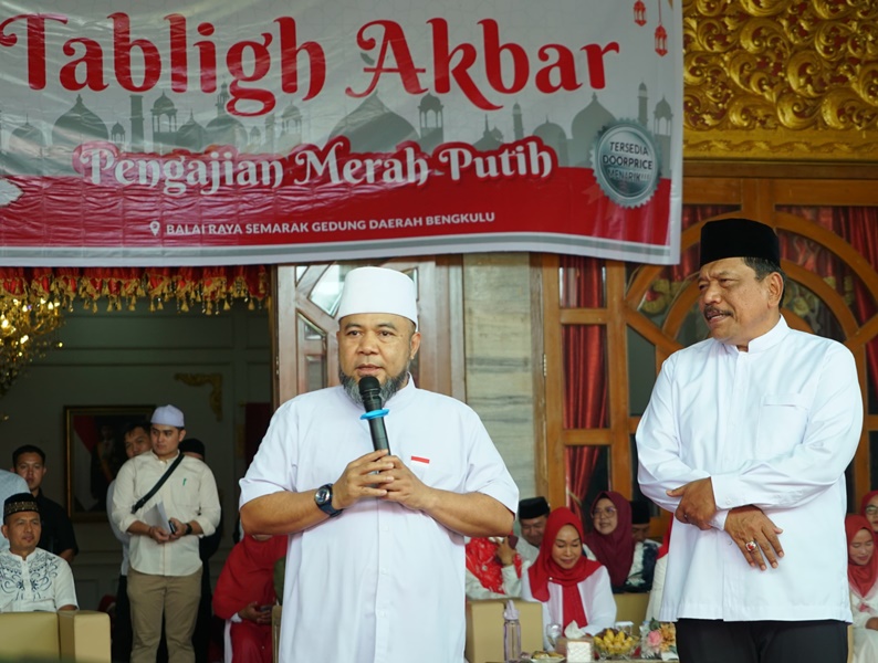 Hal demikian disampaikan Gubernur Helmi Hasan saat hadir dan memberikan sambutan dalam kegiatanTabligh Akbar Merah Putih yang diselenggarakan pada Minggu, 19 Oktober 2025 di Balai Raya Semarak Bengkulu.