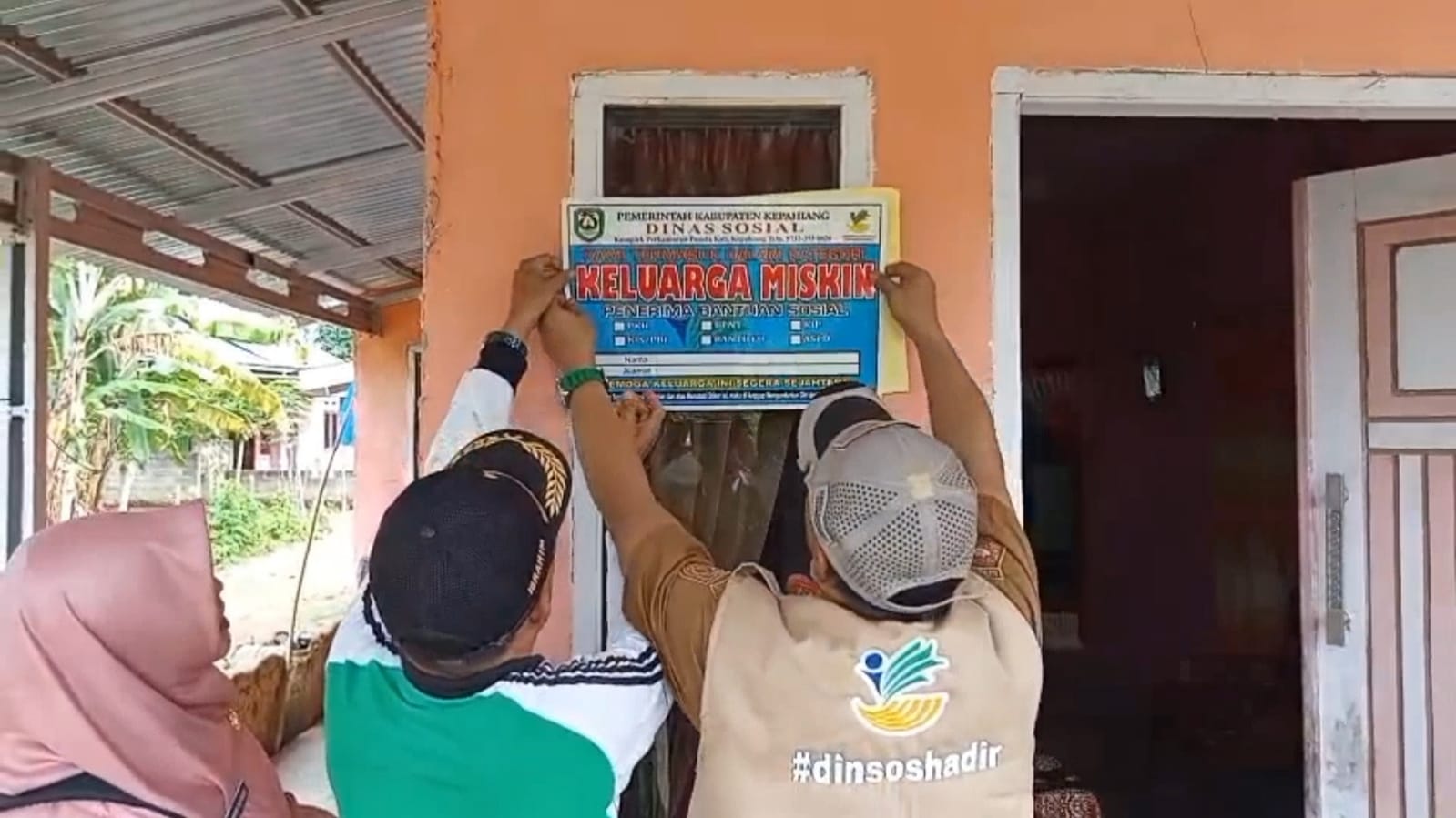 Penempelen stiker miskin terhadap rumah penerima Bansos oleh Dinsos Kepahiang--JIMMY/RK