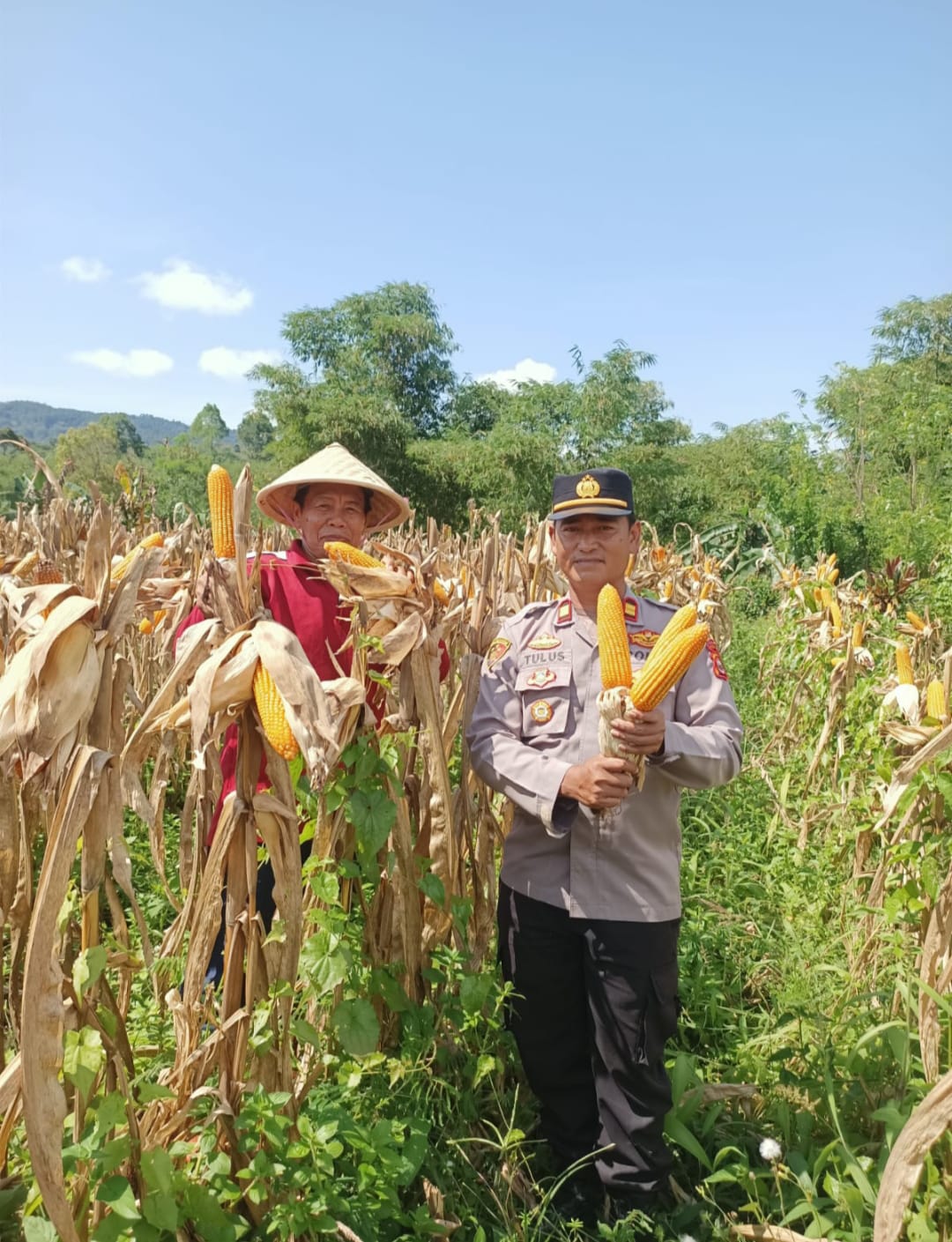 Kepala desa Pelangkian, Sugandi dan Kapolsek Kepahiang, Iptu Tulus Wibowo, SH melakukan panen raya jagung program Ketapang--SUHAI/RK