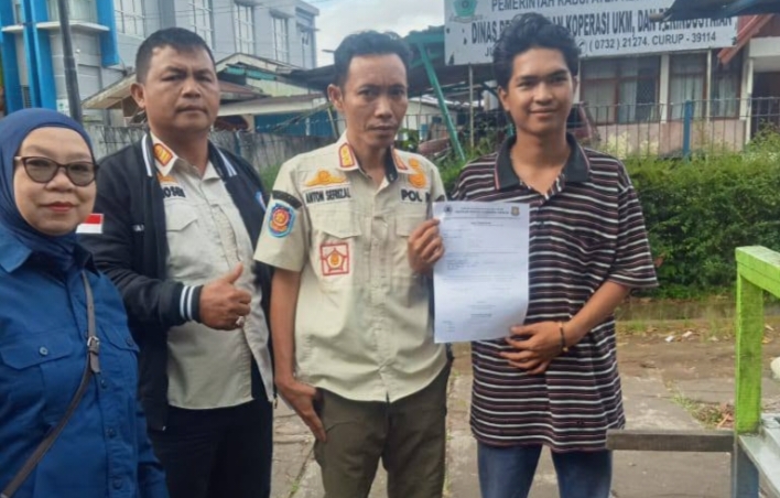 Satpol PP Rejang Lebong saat memberikan teguran tertulis kepada salah satu pedang yang ada di kawasan jalan Sukowati Curup pada Kamis, 6 November 2025--GATOT/RK