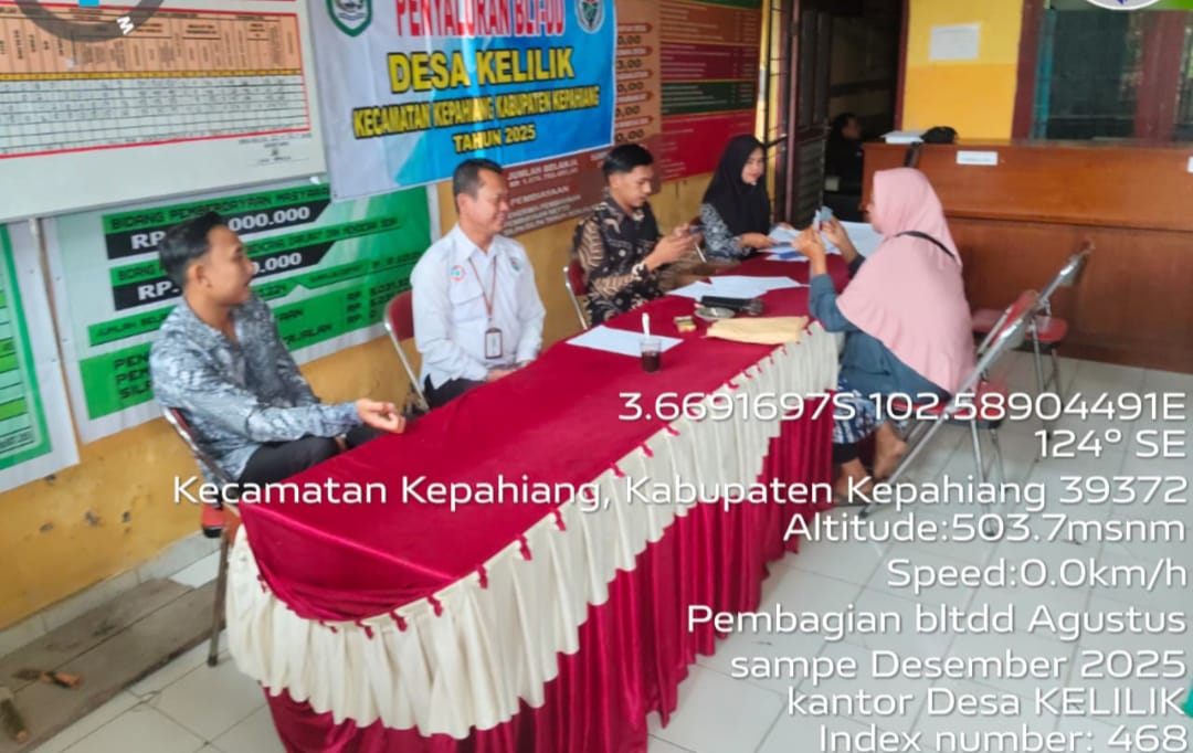 Radarkoran.com-Pemerintah Desa (Pemdes) Kelilik, Kecamatan Kepahiang Kabupaten Kepahiang, kembali menyalurkan Bantuan Langsung Tunai Dana Desa (BLT DD) untuk periode Agustus hingga Desember 2025. Penyaluran ini dilakukan di kantor desa dan diterima oleh 14 Keluarga Penerima Manfaat (KPM).